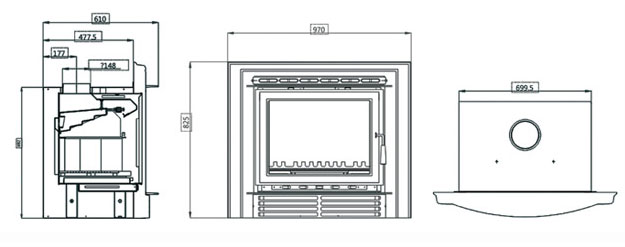 Vật liệu: thép carbon, Cửa và khung gang, kính gốm (hiệu NEG hoặc Schott), sơn chịu nhiệt độ cao (hiệu Forest)